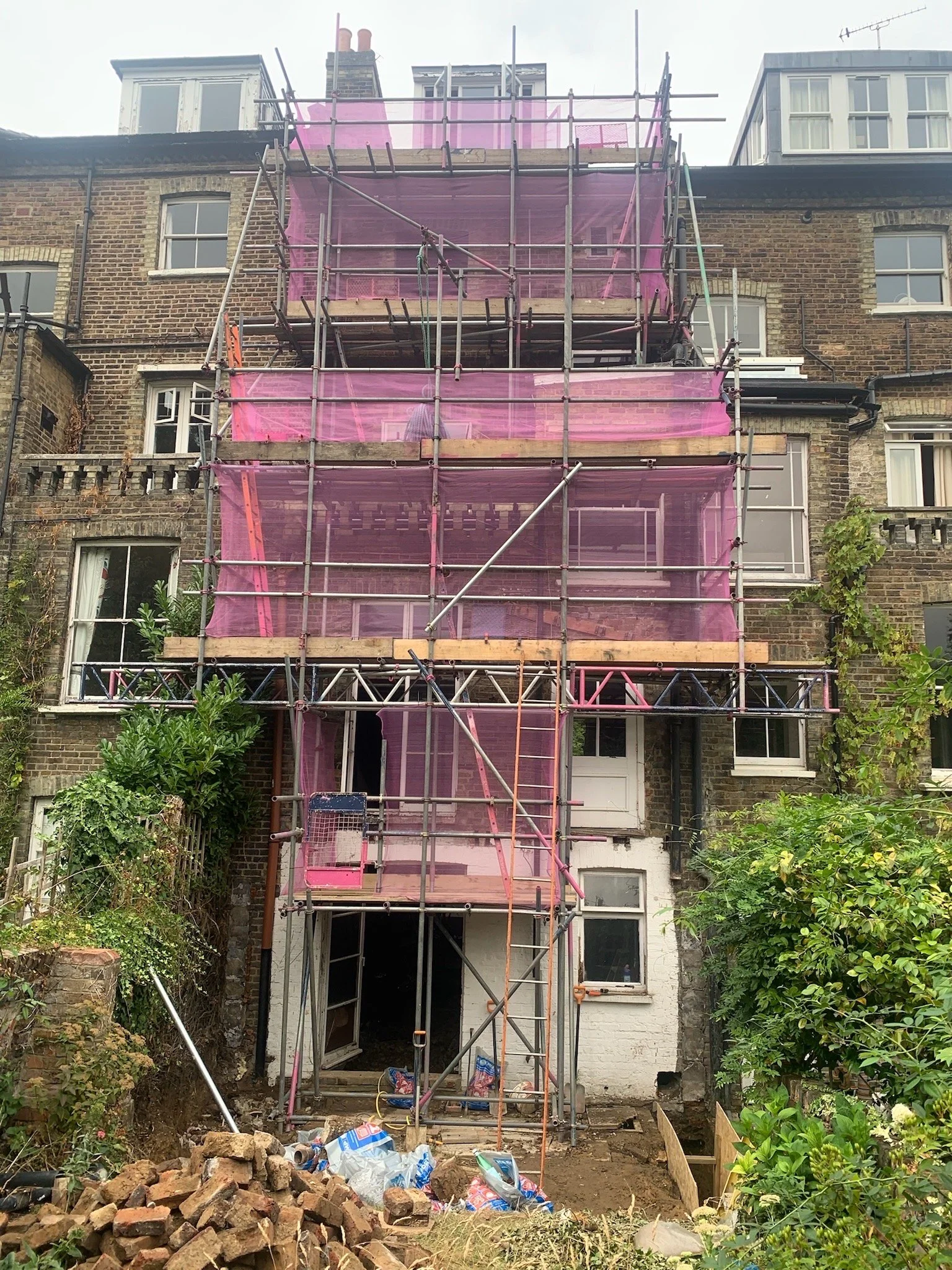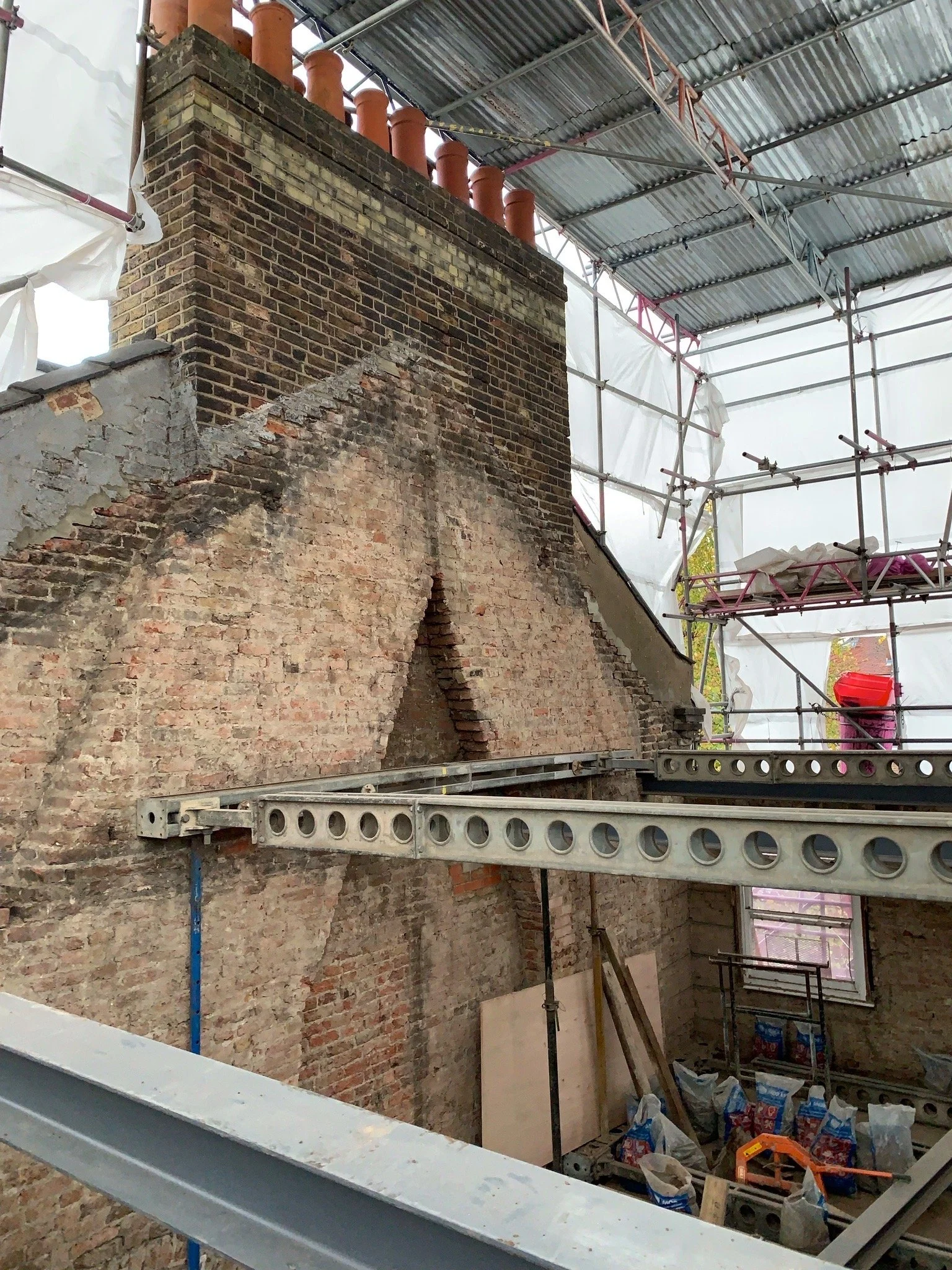 All internal floors, the roof, rear elevation, and chimney breasts were removed and rebuilt. The project’s complexity centred around the design and execution of a bespoke temporary works system to support the retained façade and adjoining party walls.