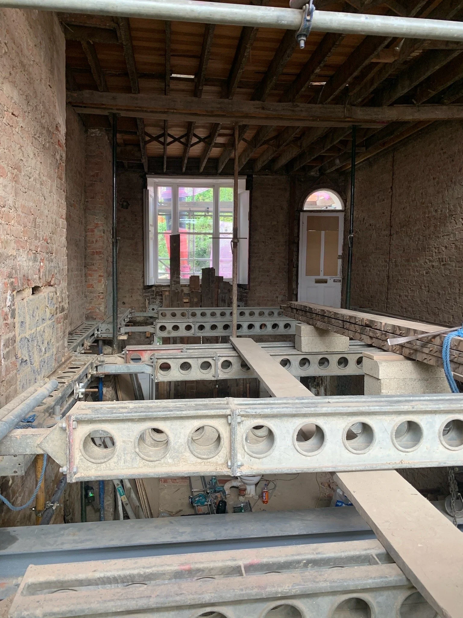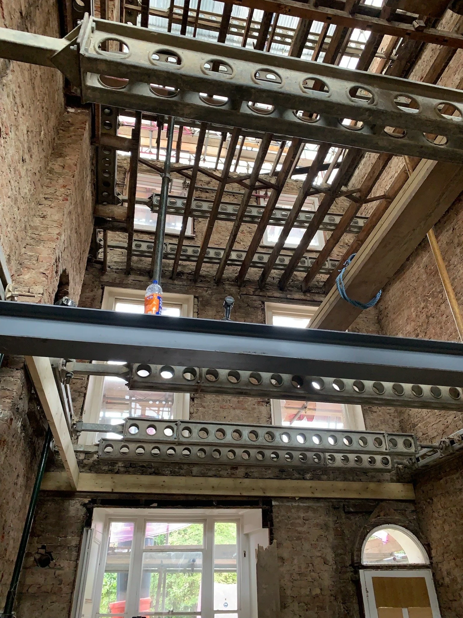 Working within a conservation area, based on a hill, the project demanded detailed planning, and a strong method process. after strip out is was evermore clear that the floor structures and the brick walls had severely deteriorated and had lost their structural integrity and required full re-build.